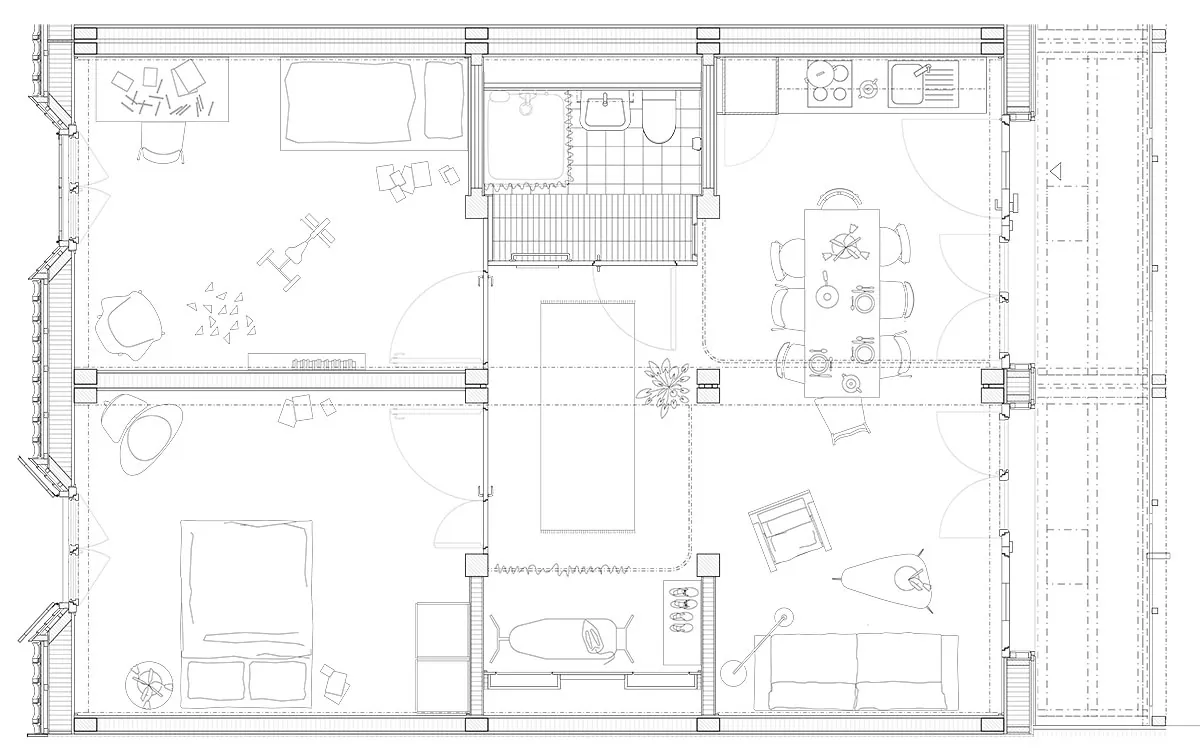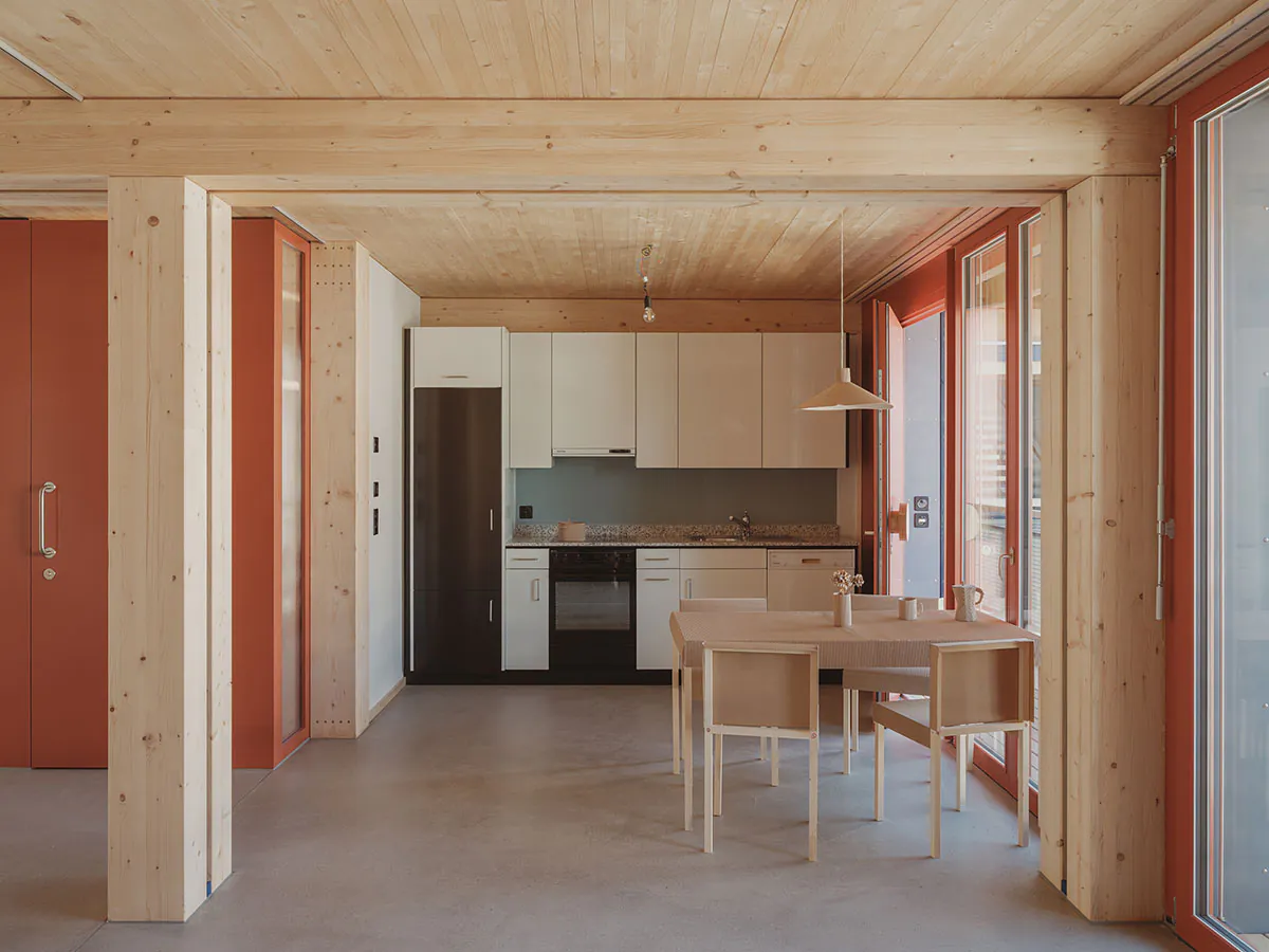 « façade » « reemploi » « Structure » « bois » « rouge » « Plan » « modulaire » « flexible » « flexibilité » « Module » « reversible »