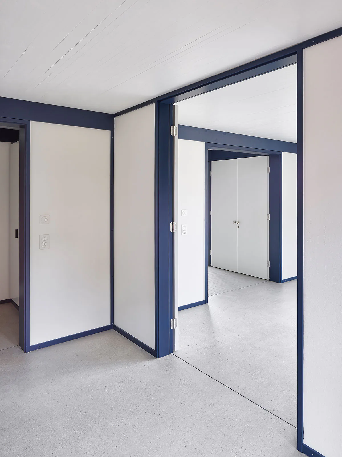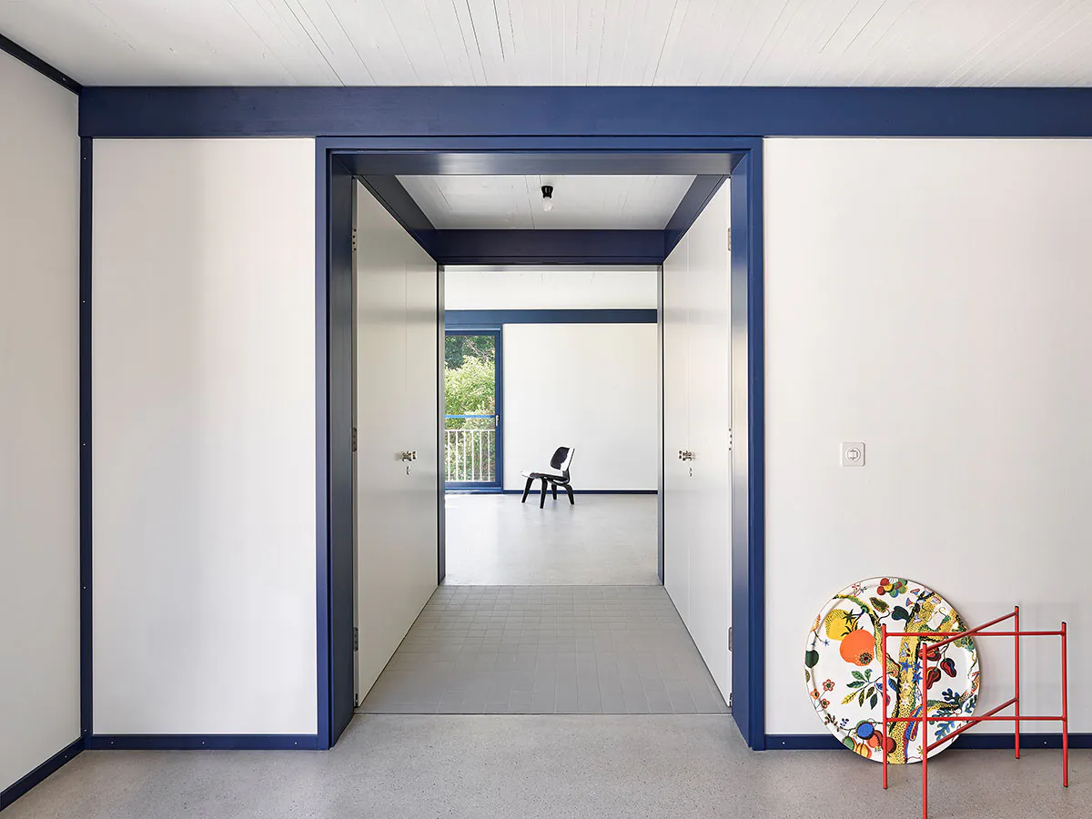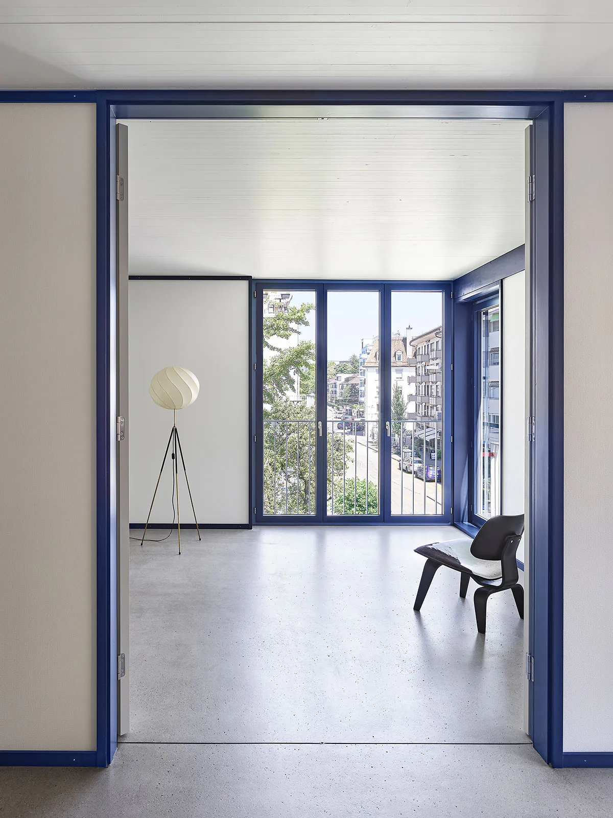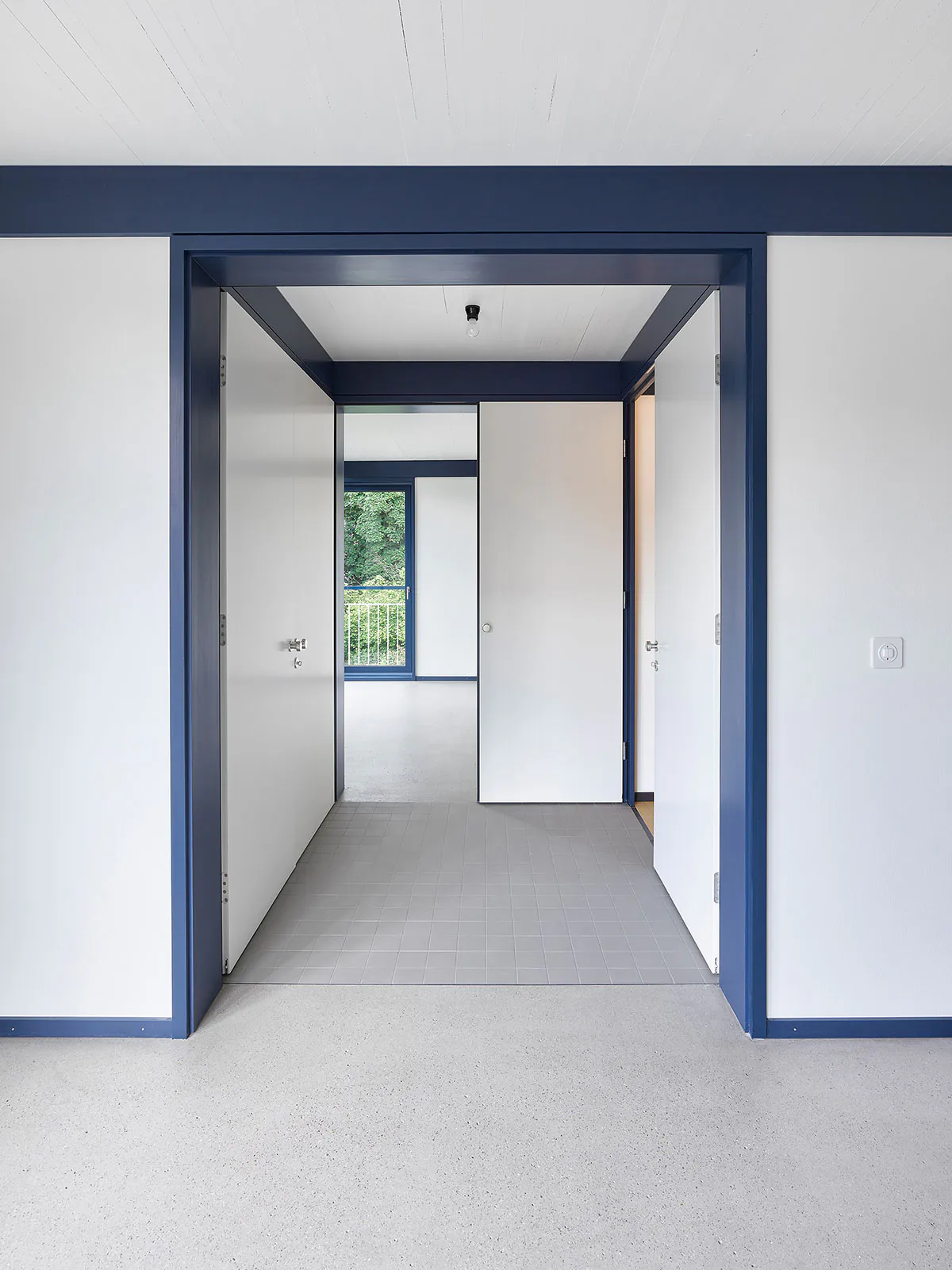 « façade » « métal « bleu » « blan » « jaune » « cuisine » « interieur » « cage Escalier » « béton » « dalle bois »